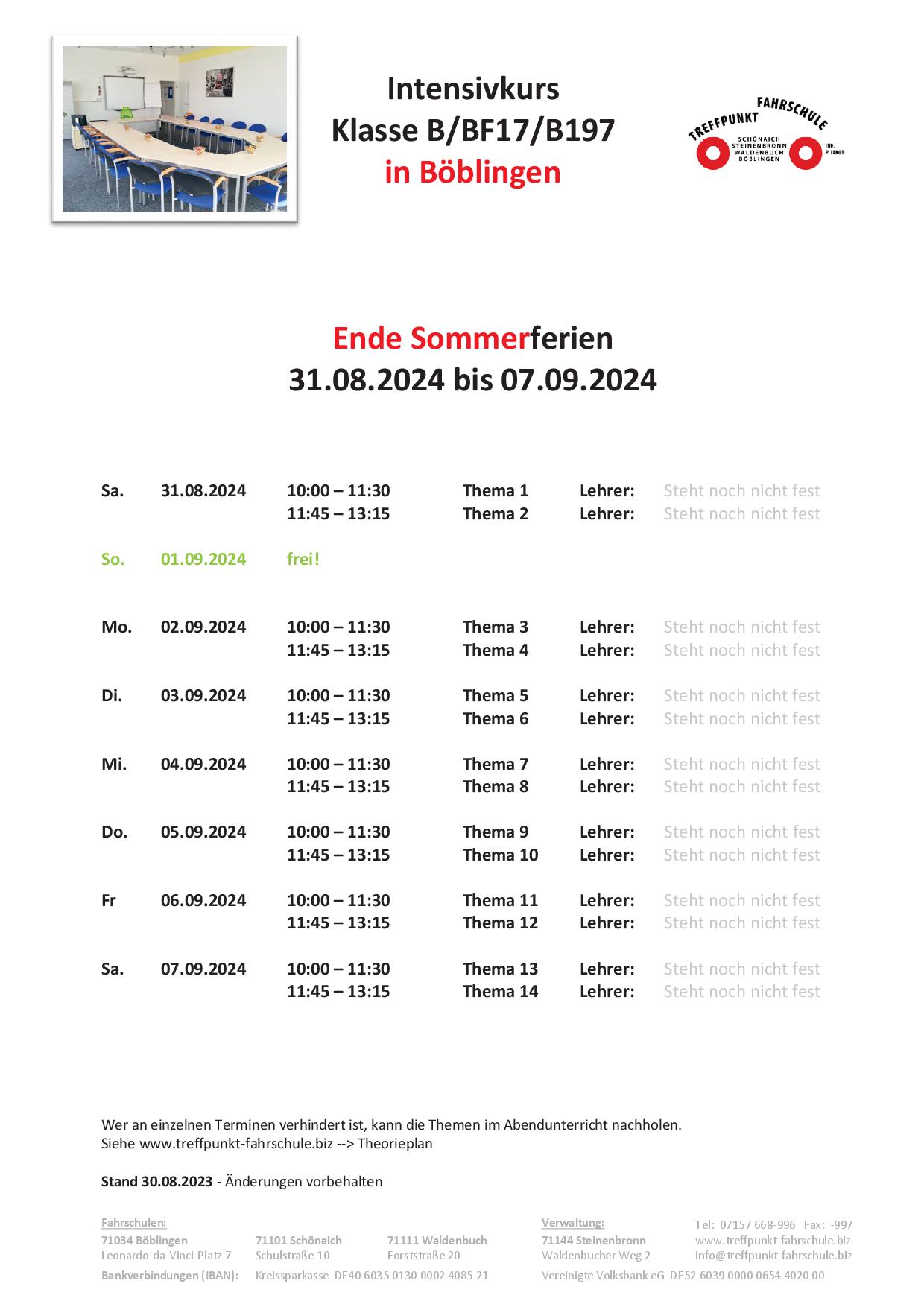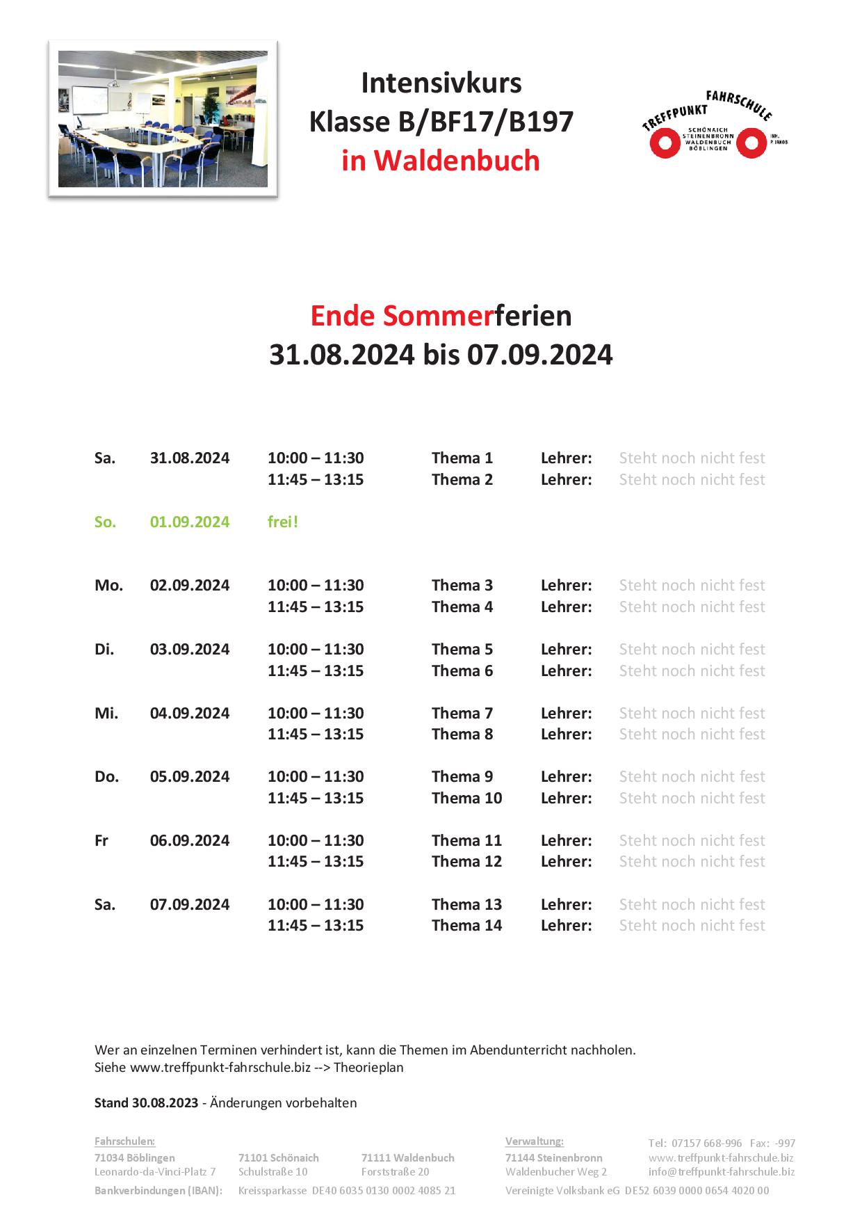 kein Intensivkurs geplant